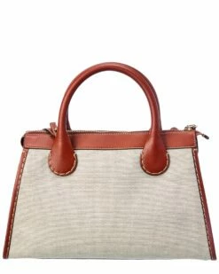 Chloé Edith Day Medium Linen & Leather Satchel Women Satchels & Top Handles