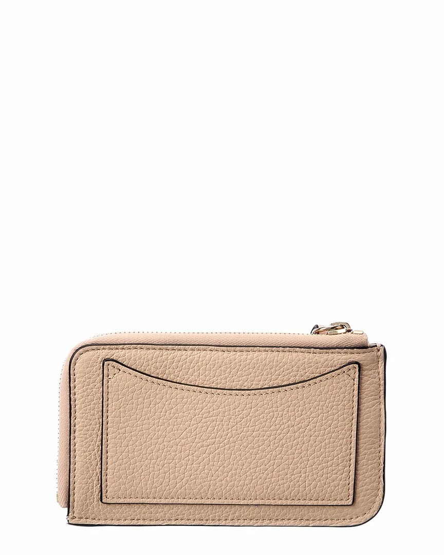 - Alphabet Leather Coin Purse in tan leather and gold-tone hardware with logo charms and exterior slide pocket