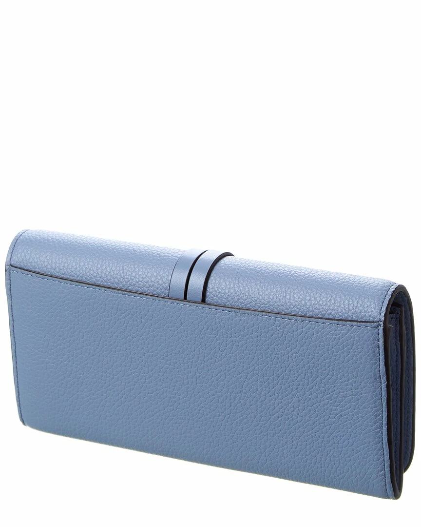 - Alphabet Leather Continental Wallet in cobalt leather and gold-tone hardware with exterior pocket and logo charms