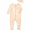- Bodysuit in pink with ruffled collar, elasticized footed cuff and accompanying plush blanket