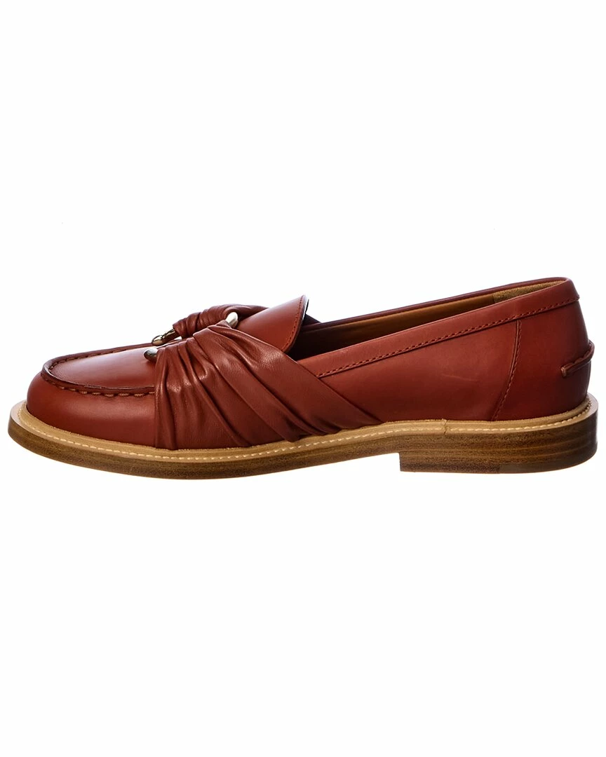- C Leather Loafer in brown leather and gold-tone hardware with ring accent