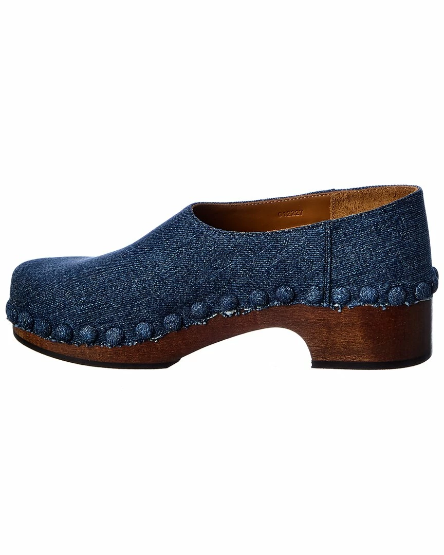 - Denim Mule in blue denim canvas with wooden platform