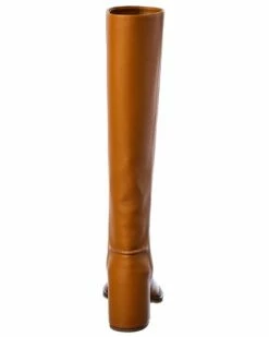 - Edith Leather Knee-High Boot in luminous ochre leather with rounded toe