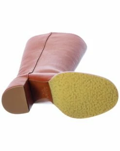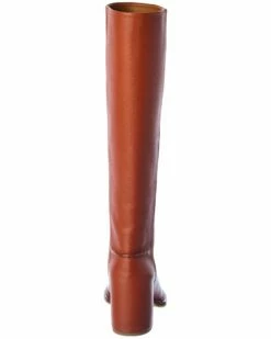 - Edith Leather Knee-High Boot in terracotta red leather with rounded toe