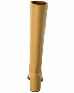 - Edith Leather Knee-High Boot in beige leather with rounded toe