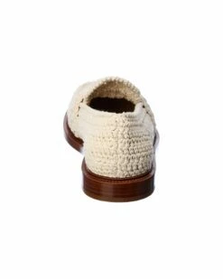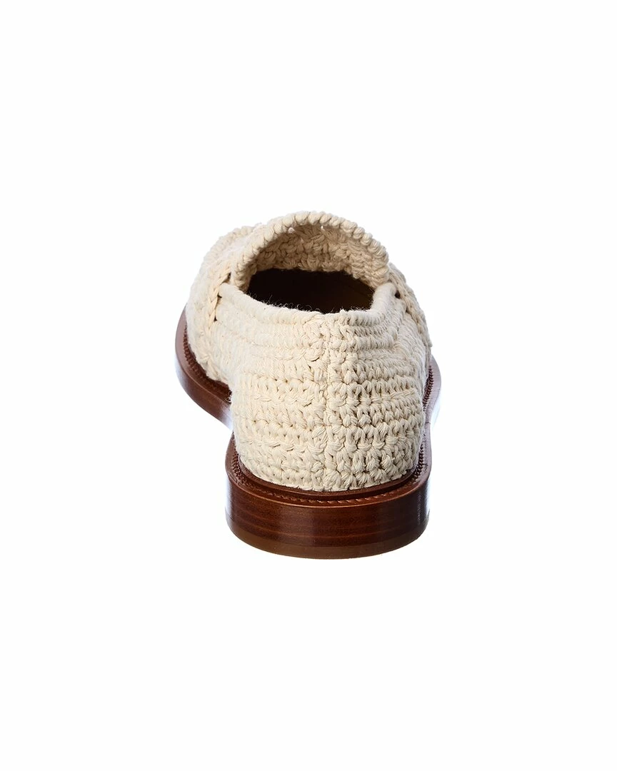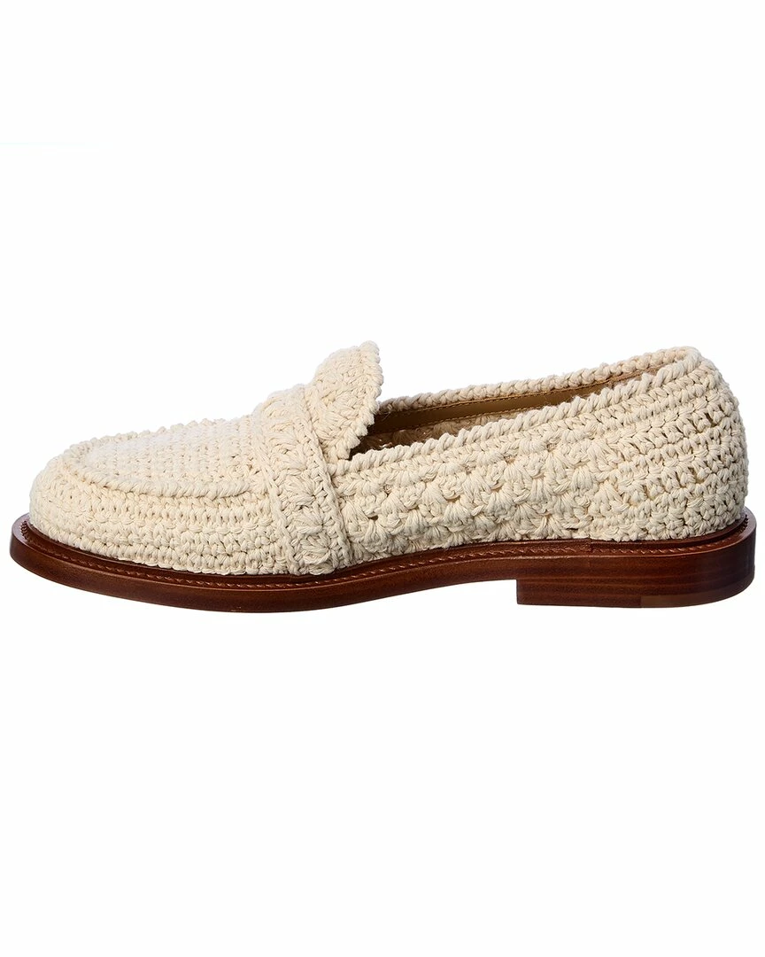 - Kalya Crochet Loafer in white crochet cotton with wooden heel