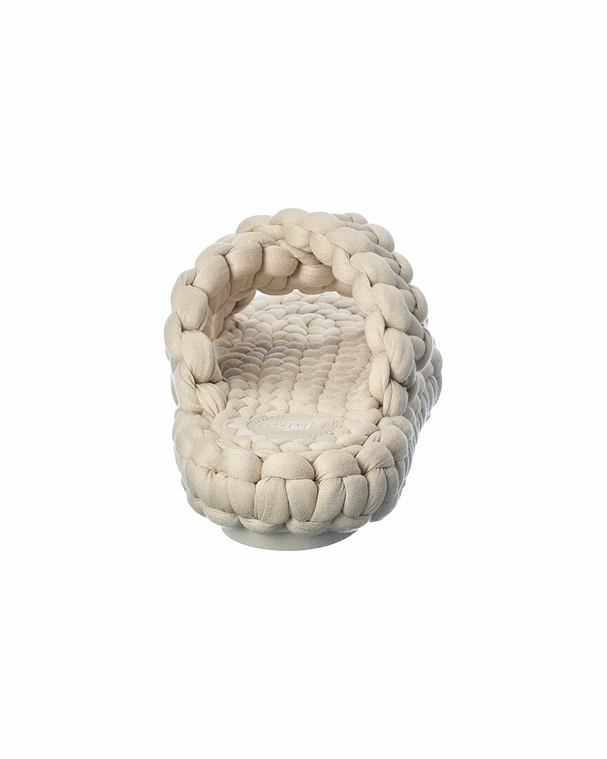 - Kamy Platform Sandal in eggshell woven textile with strappy design