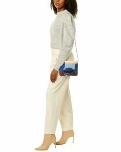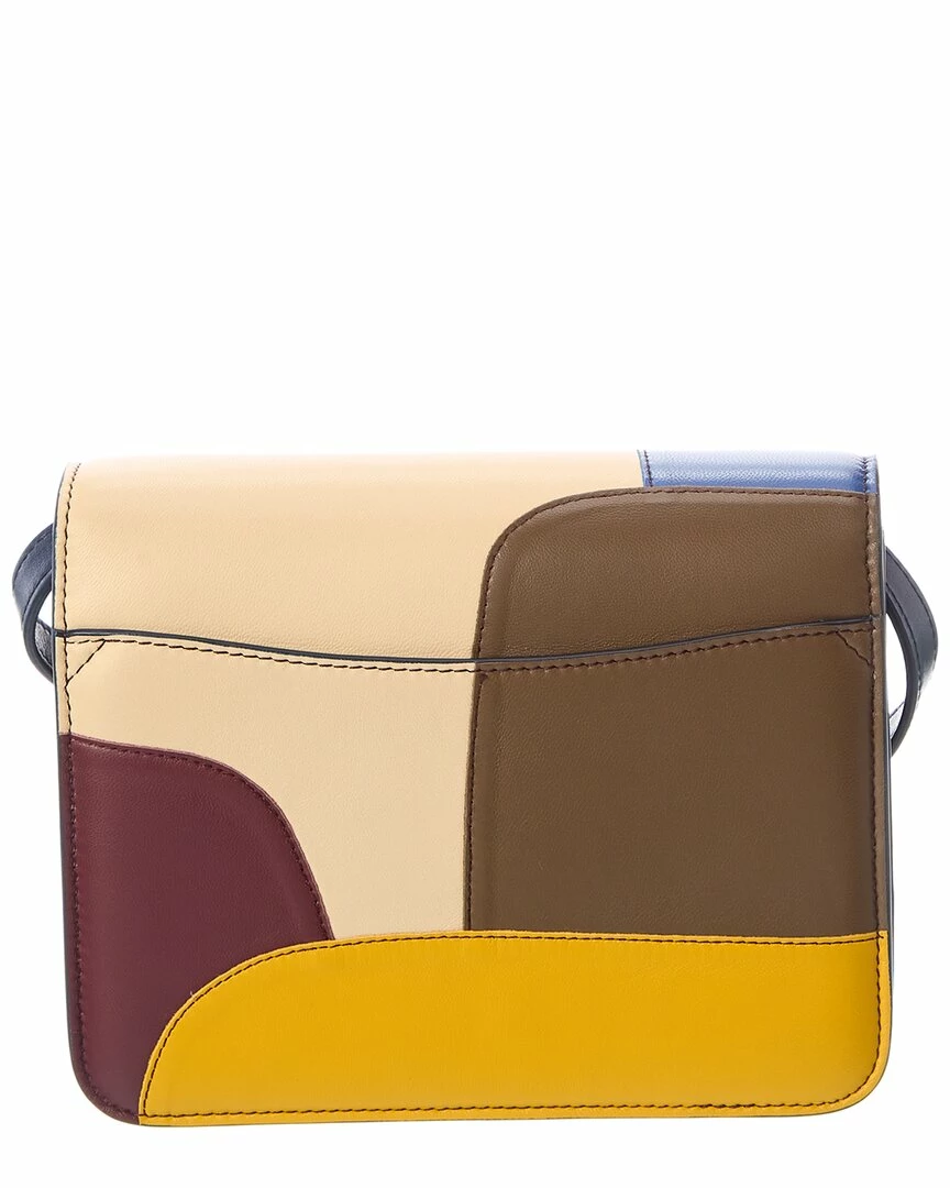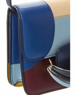 - Kattie Leather Crossbody in blue multicolor leather and gold-tone hardware with patchwork design