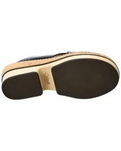- Laia Leather Mule in black leather with cork wedge and wooden heel