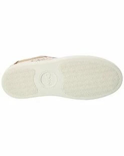 - Lauren Canvas & Leather Sneaker in beige canvas and brown leather with logo accents and scalloped trim