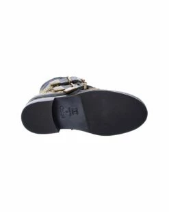 - Leather Boot in black leather and gold-tone hardware with stud embellishments and buckle accents