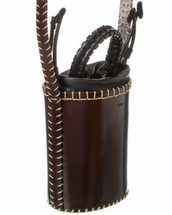 - Louela Mini Leather Bucket Bag in ebony leather with gold-tone hardware and whipstitch detailing