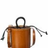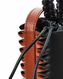 - Louela Mini Leather Bucket Bag in black and brown leather with gold-tone hardware
