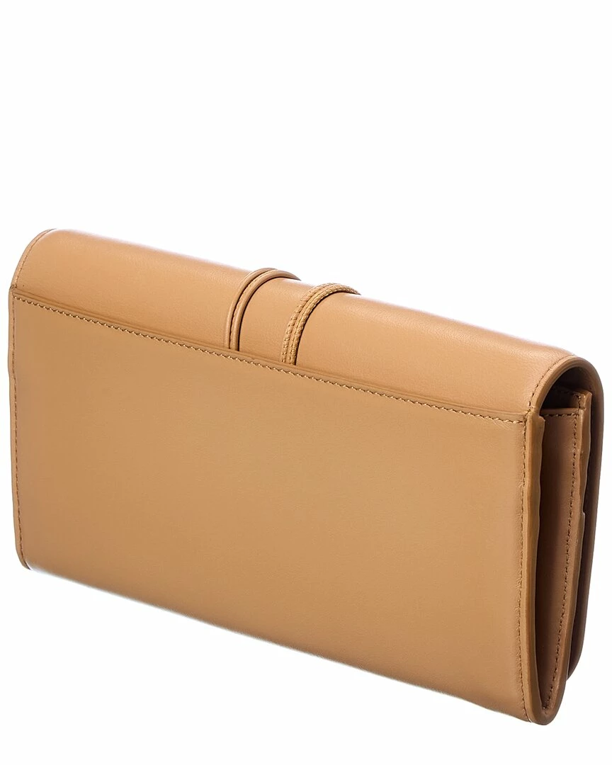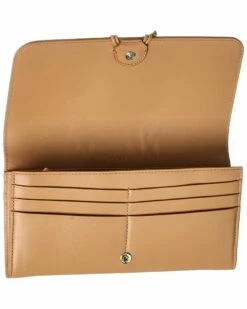- Malou Long Leather Continental Wallet in light tan leather and gold-tone hardware with logo charms and exterior pocket