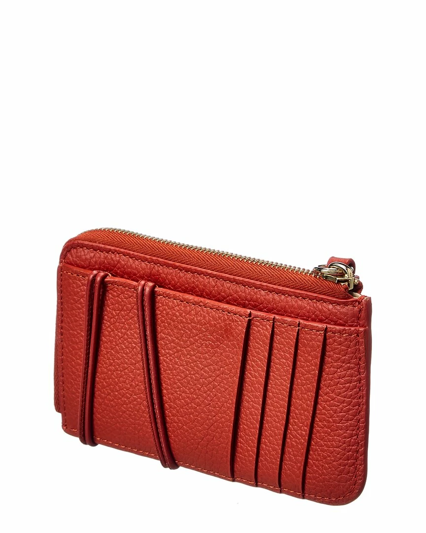 - Malou Zippered Small Leather Coin Purse in red ochre leather and gold-tone hardware with logo charms and card slots