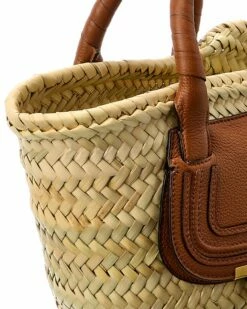 Chloé Marcie Mini Raffia & Leather Basket Tote Women Totes