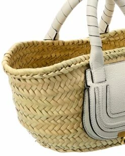 Chloé Marcie Mini Raffia & Leather Basket Tote Women Totes