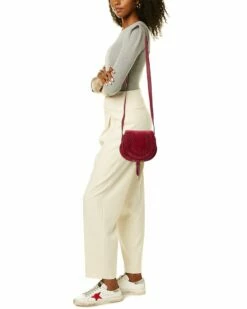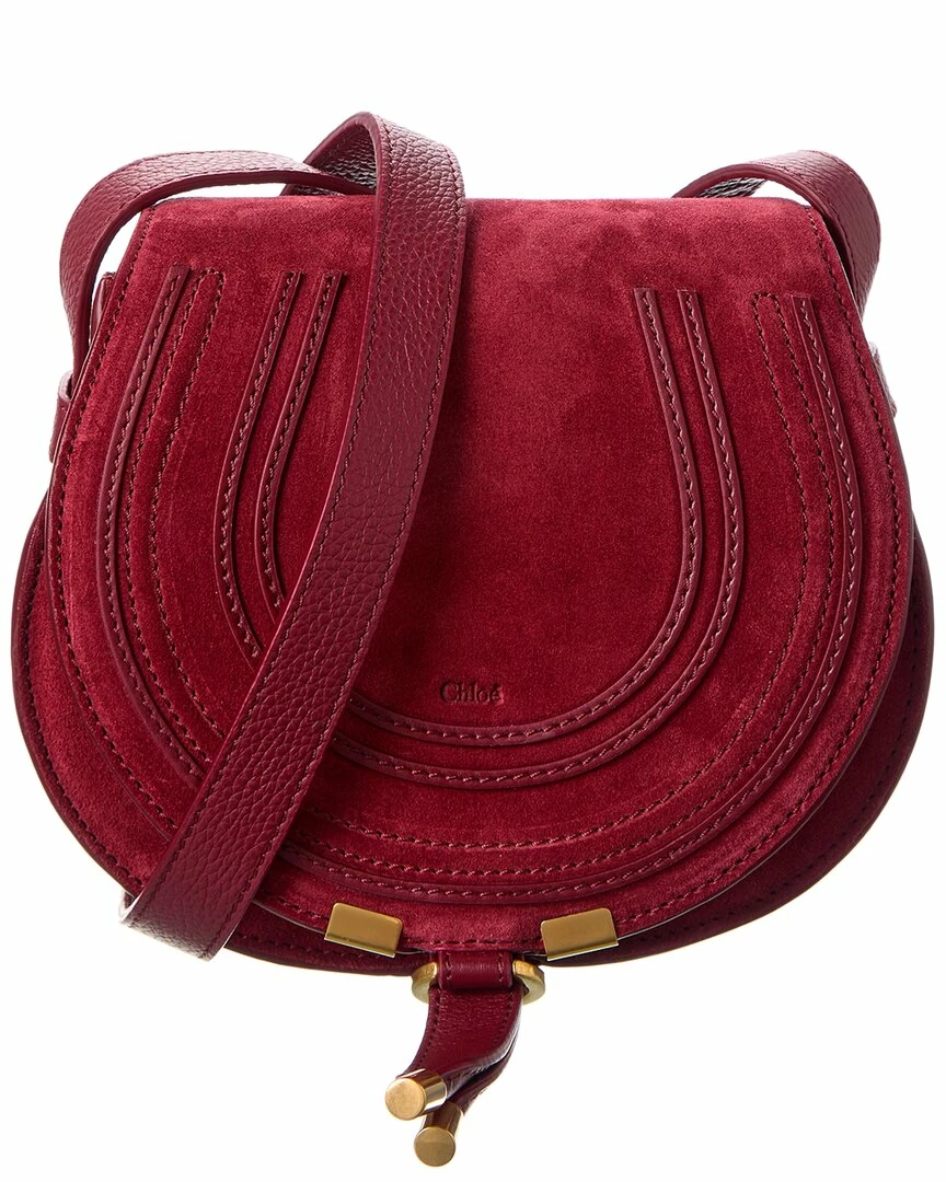 - Marcie Small Suede Shoulder Bag in dark ruby suede with gold-tone hardware