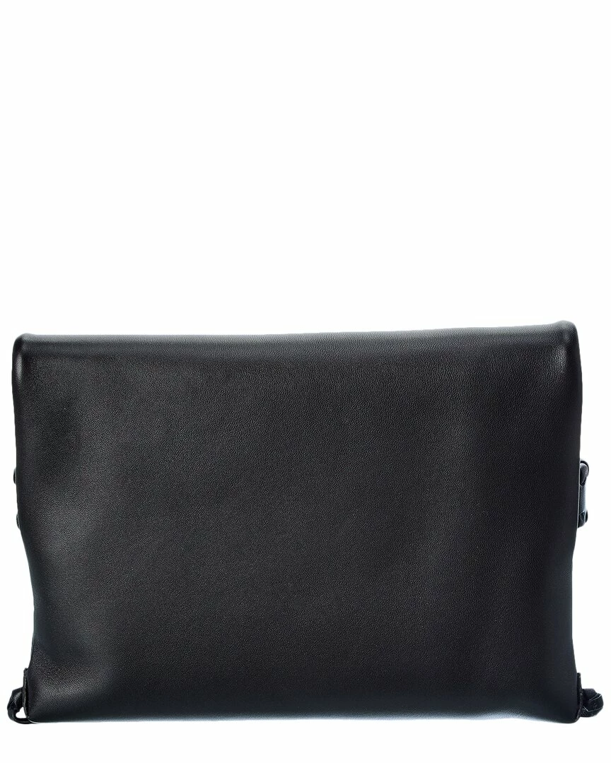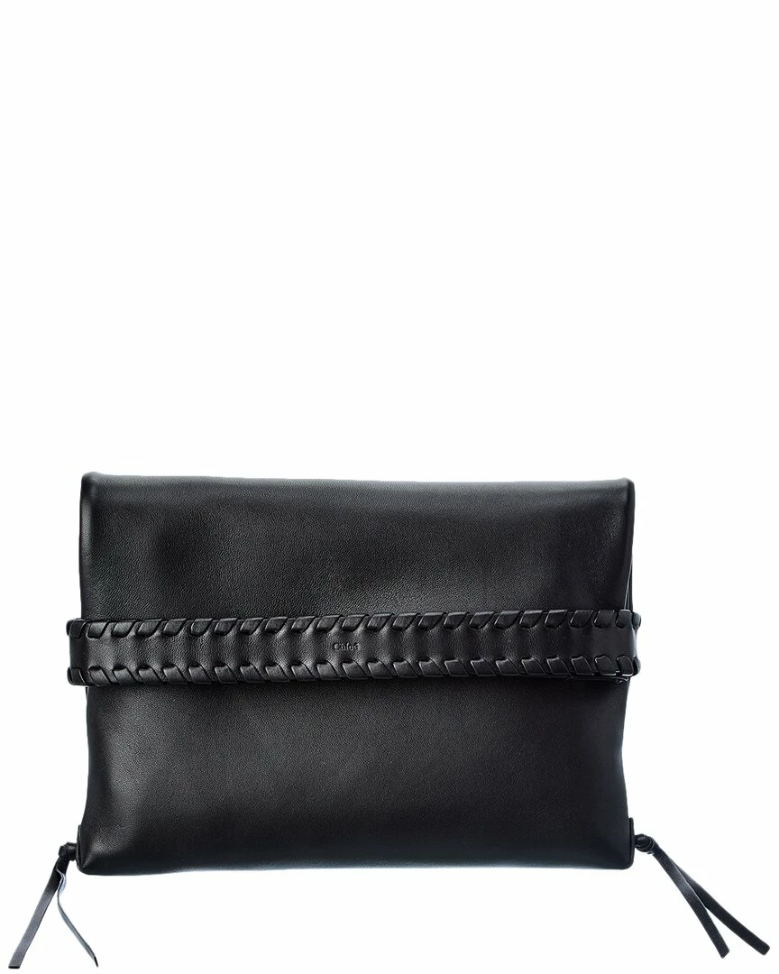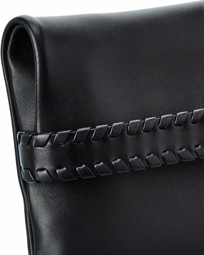- Mony Leather Clutch in black leather with leather whipstitch detailing and knotted tassels