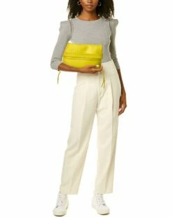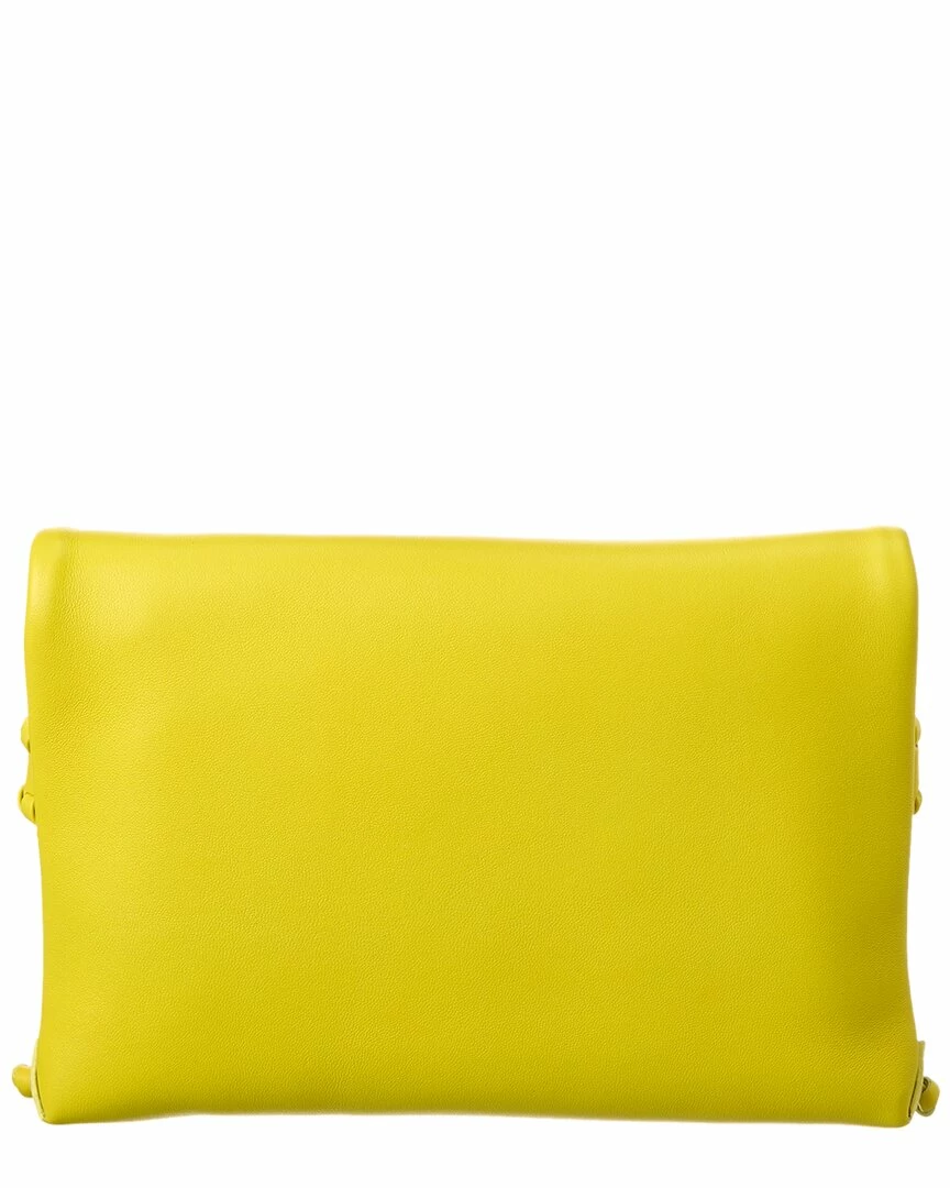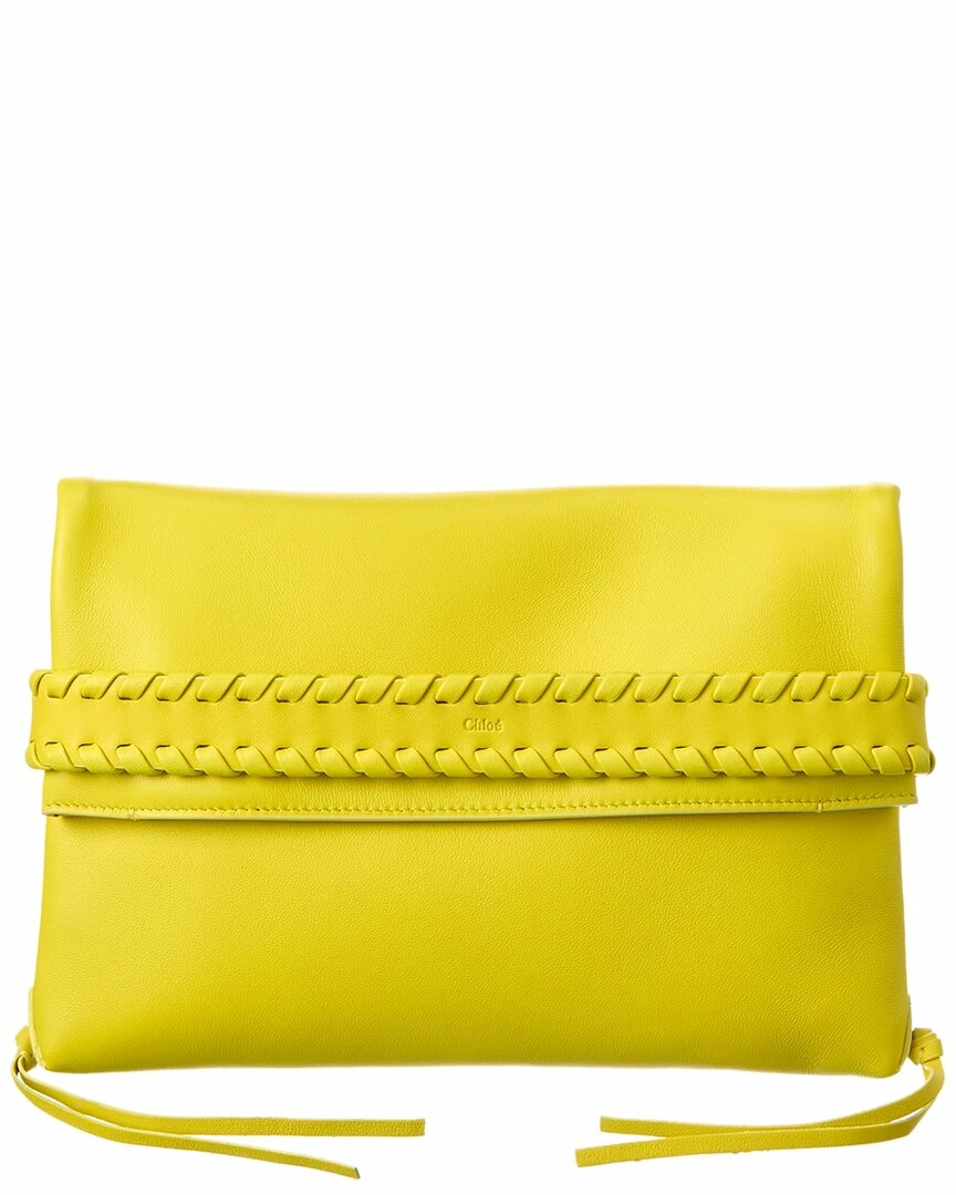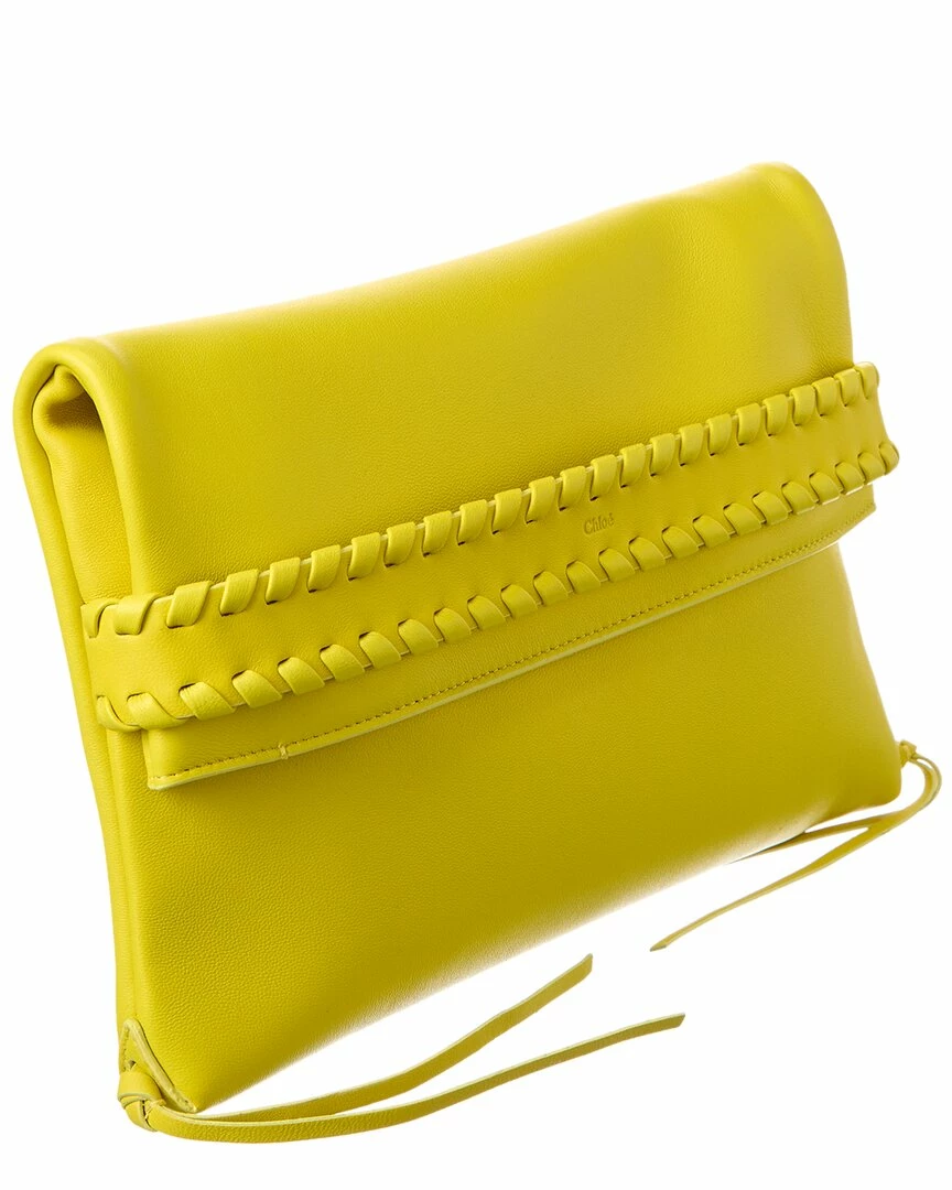 - Mony Leather Clutch in yellow leather with leather whipstitch detailing and knotted tassels
