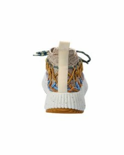- Nama Sock Sneaker in beige and blue knit textile with textured sole and lace-up detailing