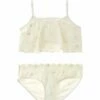 - One-Piece in white with scalloped ruffle trim