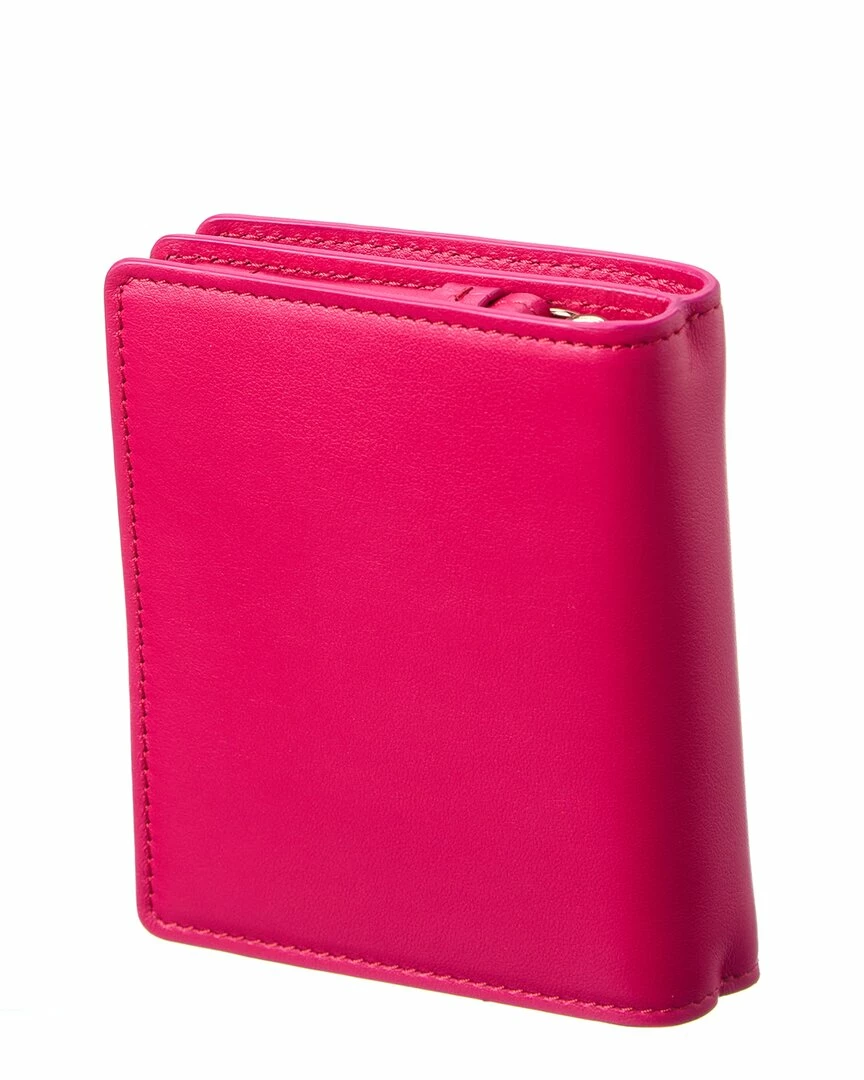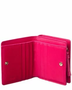 - Sense Leather Compact Wallet in pink leather and gold-tone hardware with embroidered logo