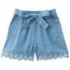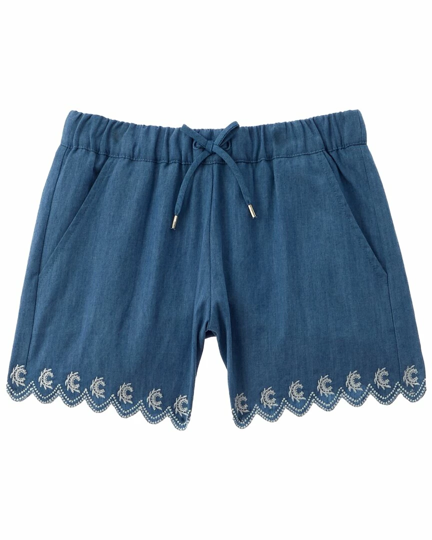 - Short in chambray with elasticized waist, two front pockets and scalloped hem