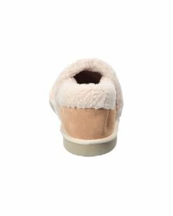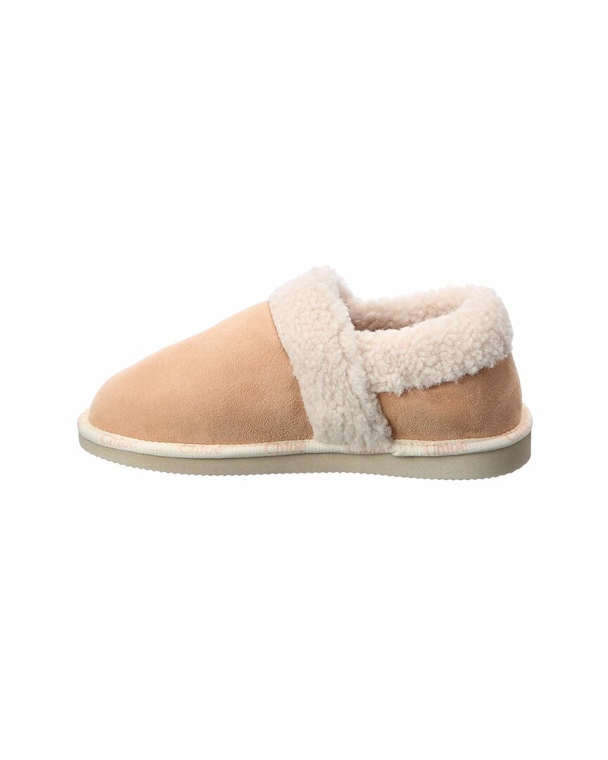 - Suede & Shearling Slipper in beige and ivory suede and shearling with rounded toe