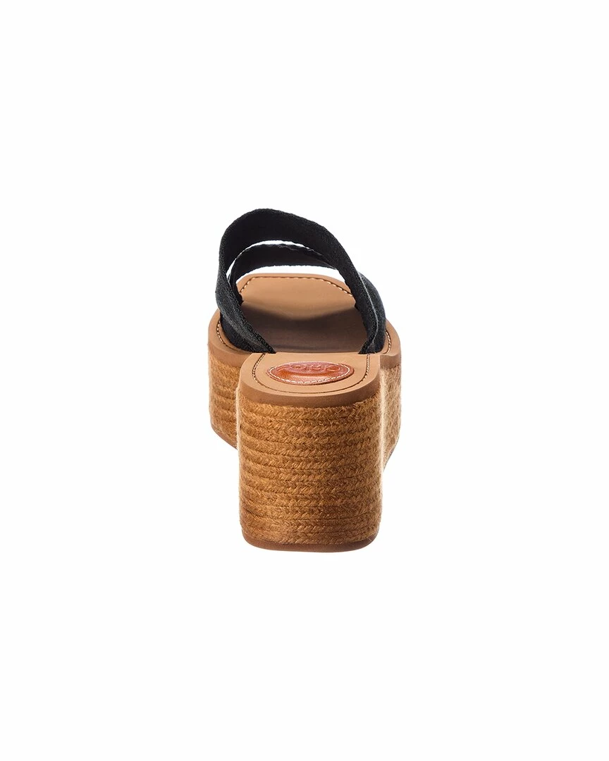 - Woody Canvas Wedge Sandal in black canvas with jute trim