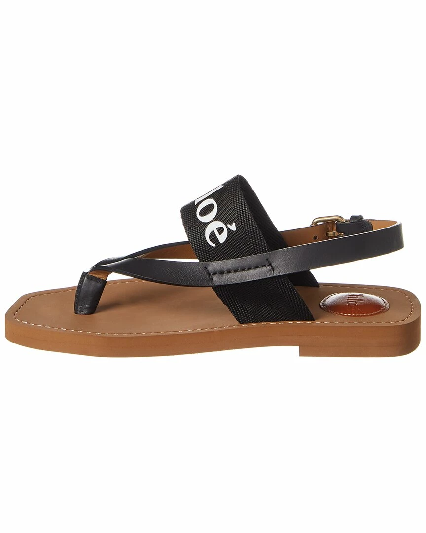 Chloé Woody Logo Canvas & Leather Sandal Women Flat Sandals