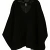 - Wool-Blend Cardigan in navy with hooded back, D-ring strap, dual front pockets and dropped-shoulder sleeves